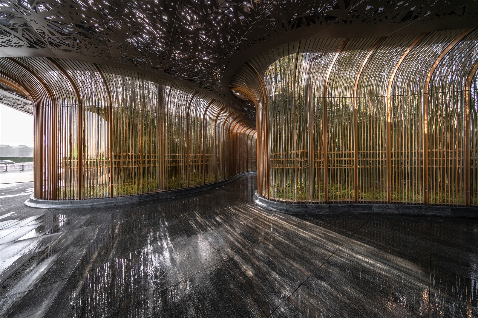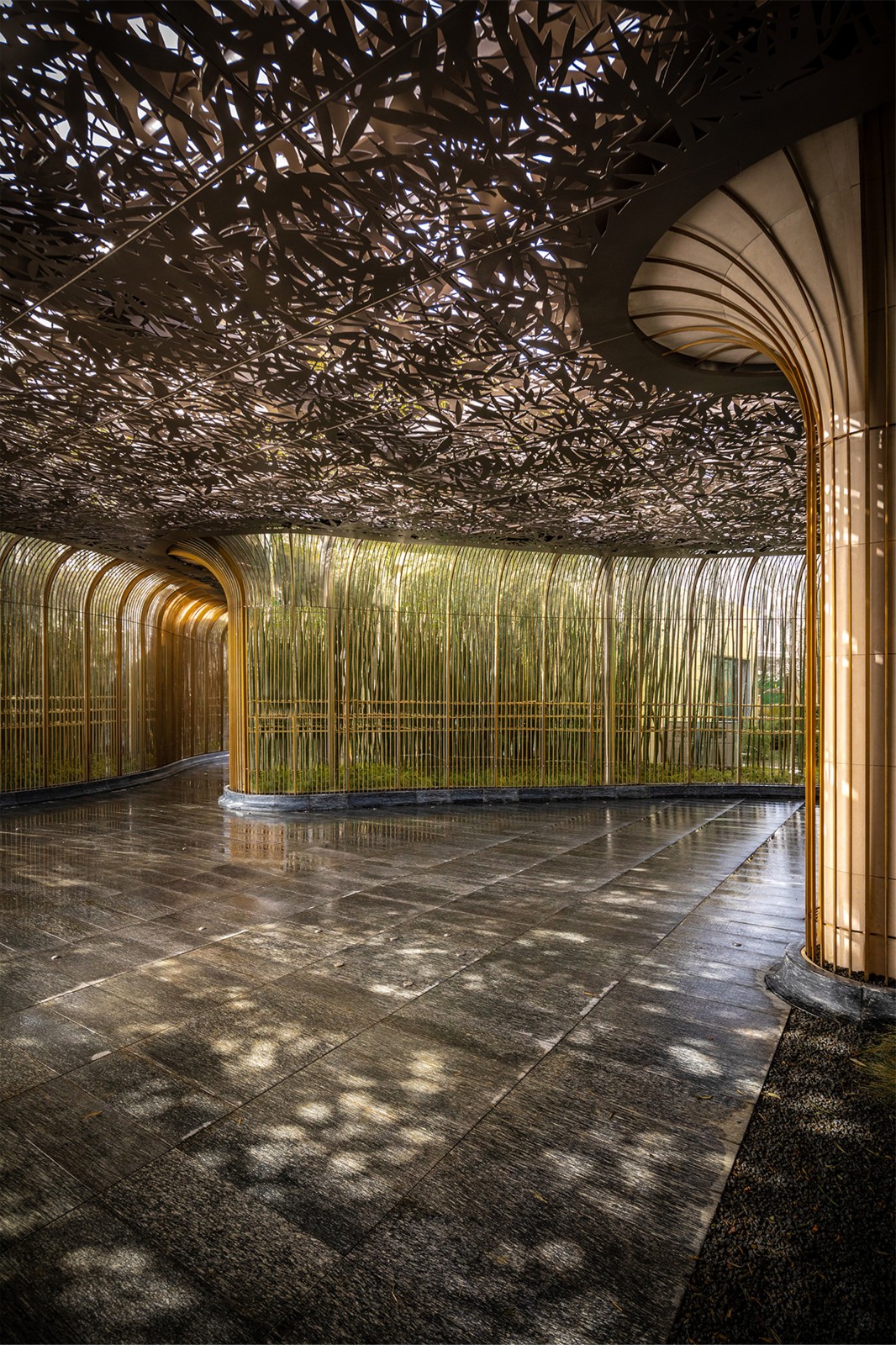 In the movement of space, "density" will affect the sensory experience, we hope it is not dense or open. The corridor of the main entrance cleverly takes the natural form of the bamboo clusters to create a level of spatial "perspective". When the sun shines, a scene of walking in a bamboo forest was created, developing a connection between people, space and nature.