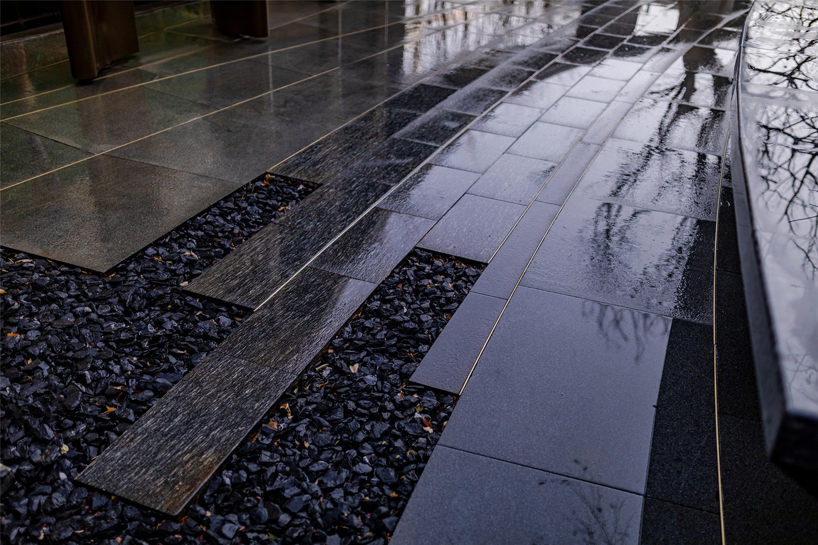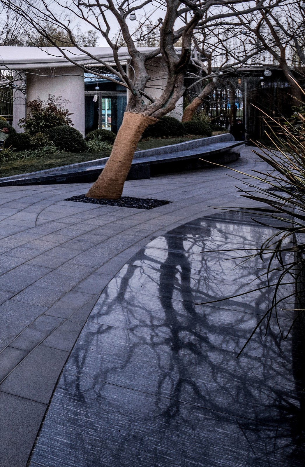 地面鋪裝的組合,取竹簇的形態(tài)發(fā)散聯(lián)想,再造了竹子雖聚生而不相交的“正直”美麗姿態(tài)。