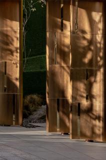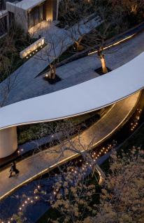 The Bamboo Garden is located in an open city street. In order to reconstruct the atmosphere of the space, the gate breaks the "monolithic" image of ordinary entrances. With a non-traditional "three-dimensional" structure, people can participate in and experience the cloudy and sunny The "container of shanshui" of natural factors such as, wind and rain.