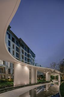 蜿蜒的連廊,潺潺的水聲,一切都是柔和的存在,令人帶著輕松的身心歸家。
