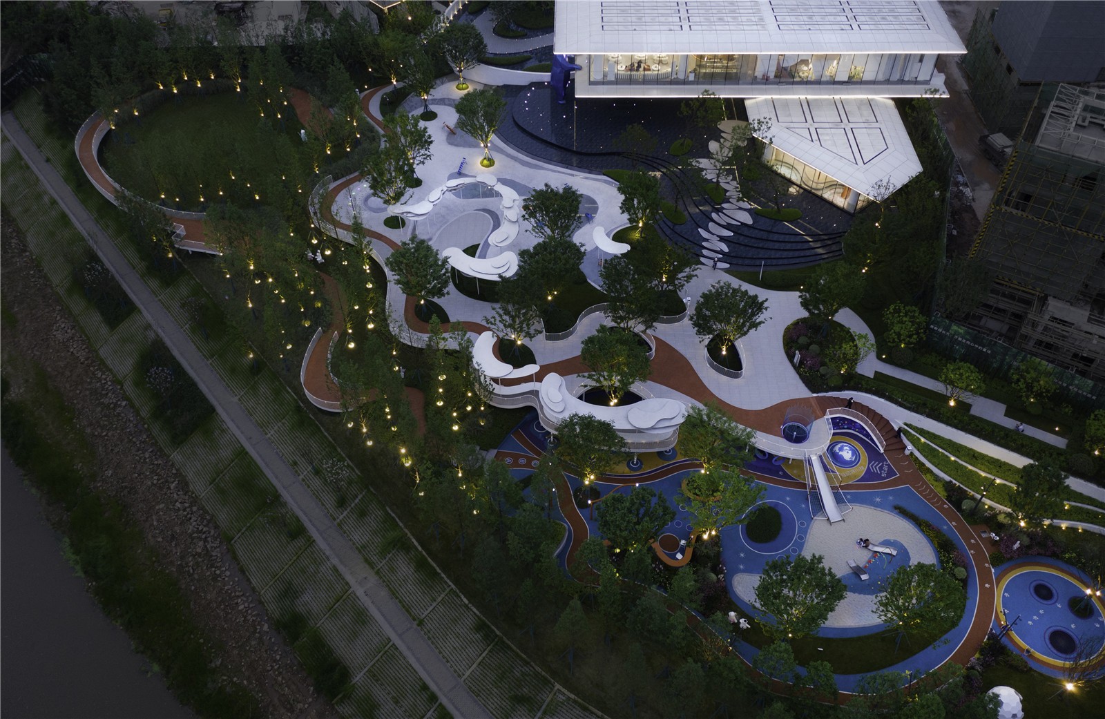 The Arctic, the end of the world, represents people’s imagination and eagerness for the ultimate mysterious territory. According to the topographic features of Chongqing City, GVL team reconstructed the site of Kaisa’s Clouds by the River, creating a vertical children’s playground with the theme of “the Arctic”, which brings different temperature and color for the Furnace City, Chongqing.