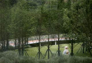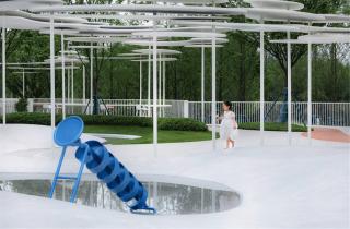 冰凌提煉而來的白色廊架簡潔輕盈,在高高低低的路徑中,像冰屋般,帶來掩映的風景,提供了遮擋、歇息的空間。