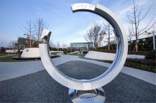 遇見“半月時光”,入口中心草坪中矗立著時光雕塑,讓生活中自然場景更具有生命力,在光與影的交錯中,演繹一場與時光和自然的邂逅。雕塑隨時間推移而旋轉(zhuǎn),讓行進至此的人發(fā)現(xiàn)時光,感悟時光。