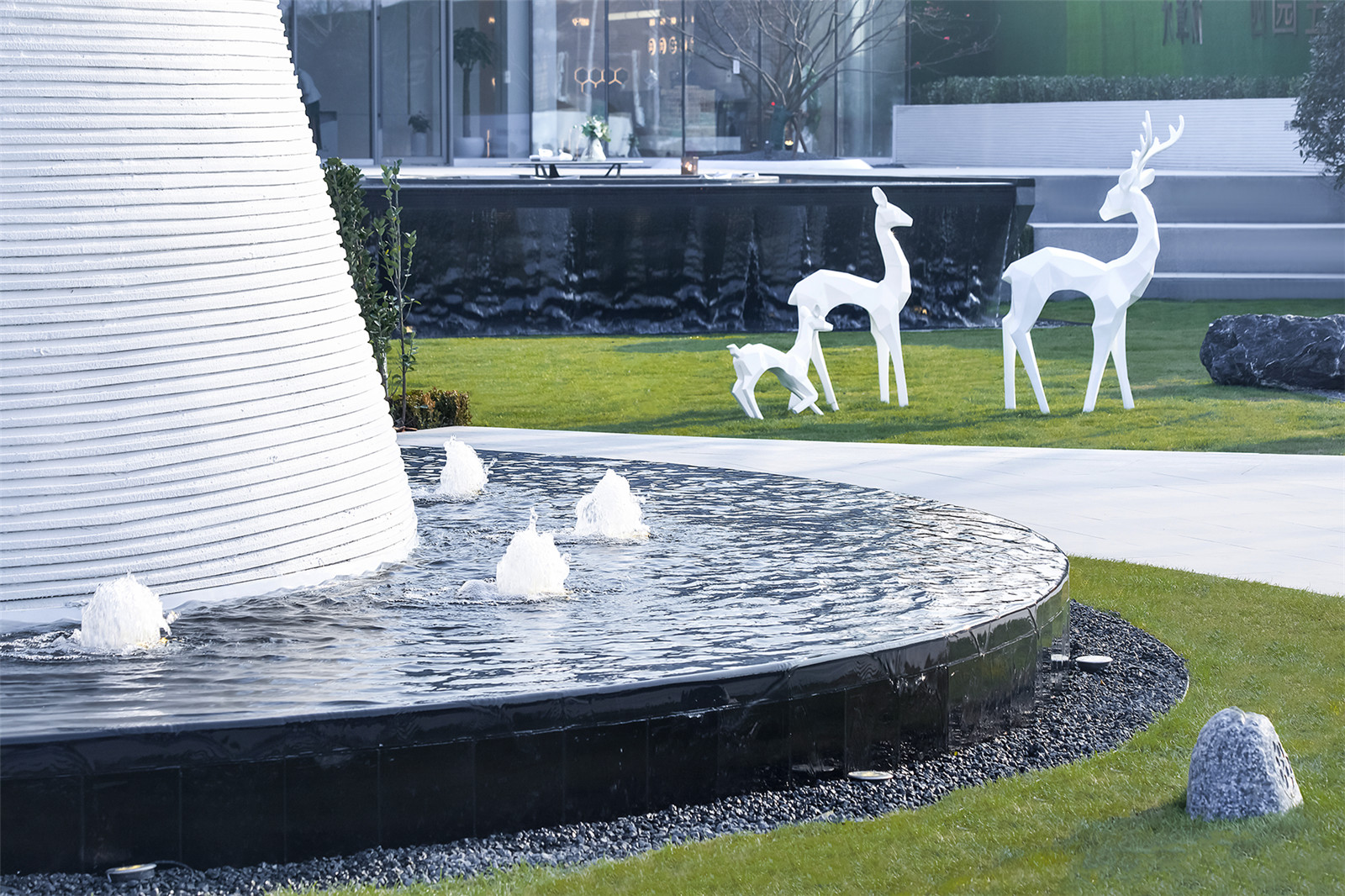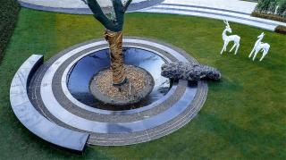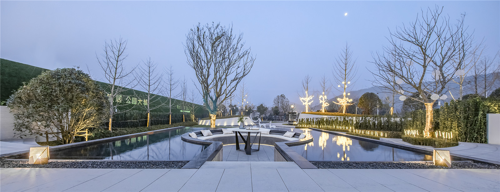 逐水而居,是人們對理想生活的向往,售樓處鏡面水景延伸至入口,兩側的氛圍水景營造了入園既有尊貴體驗的儀式感,入口對面是一處下沉水吧,人們穿林涉水來此休憩小坐,清流潺潺的跌水像開啟美好生活的序章,或遠眺捕捉時光溜走的蹤跡,或聽水簾撞擊石頭的聲音,一切生活美好都在這里悄然發(fā)生。