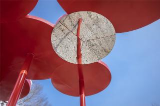 為了進一步強化這種藝術化語言,設計師在部分圓頂上安裝了反射鏡面。人站立在傘狀構筑物下方,可以從反射鏡面中看到自己的影像。自己與自己的對話,使場地更有趣味,更輕松,也更容易引起共鳴。