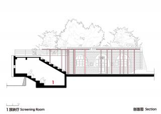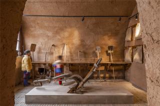 The designer set the new functions as rural memory hall and small theater. The old kiln cave was renovated, its appearance remained unchanged, and the interior space was rearranged as a small historical exhibition hall to show the history of old Hanhonggou Village and the deeds of Taiyue military region during the Anti-Japanese war. The collapsed wing rooms and inverted seats have not been restored. The designer does not want to simply "build new as old", but hopes to give the site a new spirit of place through the addition of new buildings.