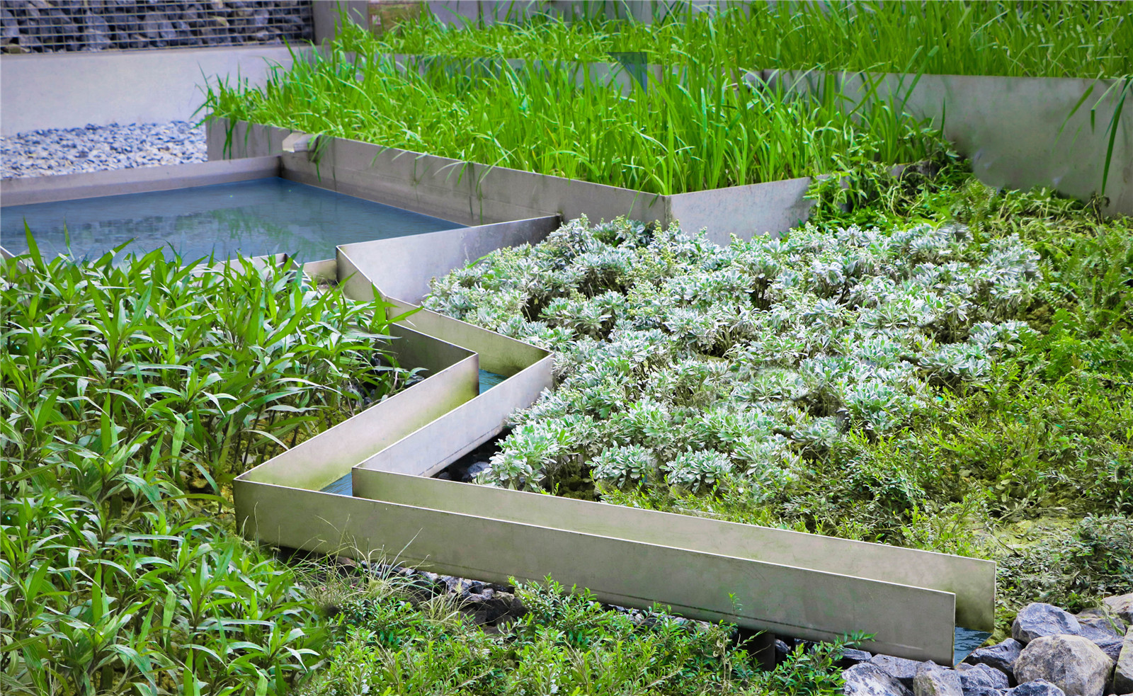 In this way we save up to 60% tap-water use annually and create a sustainable eco waterscape which can be used as a temporary reservoir in rainstorm.