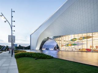 The arched entrance over the water is the “bridge of culture”, through which people can have a fantastic view of the world. The large area water makes the huge building look graceful and dynamic. Meanwhile, it keeps visitors far away from the building, thus feeling less oppressive.