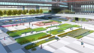 With entrances and exits in four directions, the visiting routes are relatively complicated. Therefore, based on crowd predication and parametric design, we created an effective signage system using the changing pavement. In addition, the 74° parallelograms are parallel to the buildings, which contributes to a unified style between landscape and architecture.