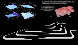 基于多向坡的復(fù)雜地形現(xiàn)狀,我們通過建立模型推敲以及參數(shù)化設(shè)計來解決問題,因此擋墻是以三維異形、參數(shù)化漸變的形態(tài)來展現(xiàn)的,兼顧擋墻、座椅、排水渠和消能坎的功能,兼具功能性、視覺的豐富性和趣味性。