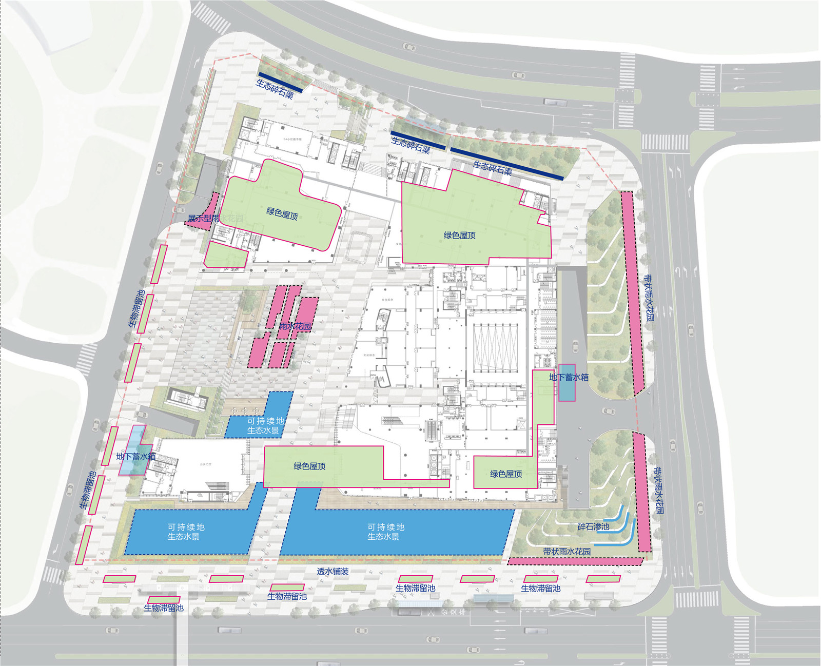 In the meantime, we need to create refined sponge-city landscape, which means the high integration of green infrastructure and landscape art. It will showcase the atmosphere of the public building and provide excellent activity spaces for citizens. In face of the challenges, we presented the following five strategies.