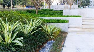 花園下方鋪設(shè)了特殊的基質(zhì)土、粗砂、碎石和排水盲管,以幫助漫流的雨水可以在此更好的滯留、凈化和下滲并輸送至地下蓄水箱中,同時也不影響地上植被景觀的營造,這樣的設(shè)計也呼應(yīng)了“四水歸堂”的文化特色。