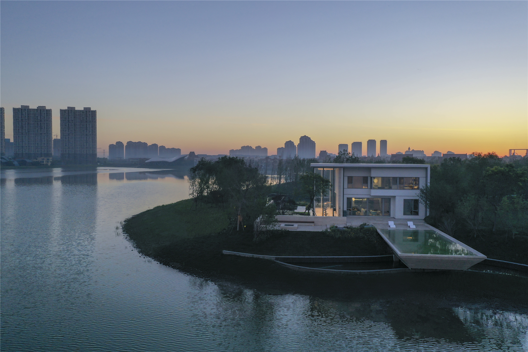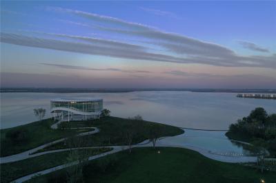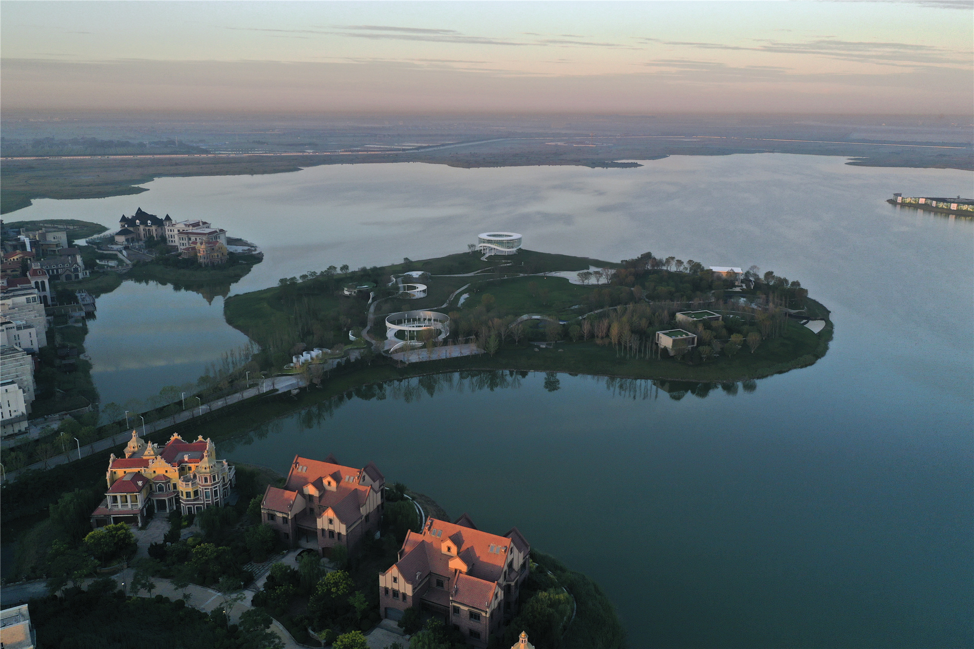 天津融創(chuàng)星耀五洲9號島,其特別之處讓人不禁聯(lián)想起古時那一片片“沽”。它原是一個臨近湖岸的坑塘,中間的地勢低洼,雨季時期則會在島內(nèi)匯積成一個大的水潭。整個島嶼外形像一個自然的海星,漂浮在天嘉湖的東北角。