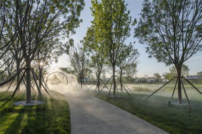 星耀五洲9號島項目通過遵循自然的設(shè)計,令島嶼復(fù)綠,生態(tài)復(fù)蘇,為野生動物打造了良好的棲息環(huán)境,也有效防范了洪澇等問題。項目用島嶼、森林、草坪、花叢等自然元素,覆蓋居民從日常到精神、從個體到社群的多元需求,從而打破傳統(tǒng)居住區(qū)單一的居住功能,意圖創(chuàng)造一個多元的、藝術(shù)的、體驗型人文社區(qū),重建人與人、人與自然的關(guān)系。項目將與居民一起,打造基于自然共生文化和理想價值觀的新型親密關(guān)系。