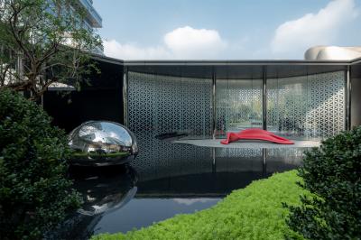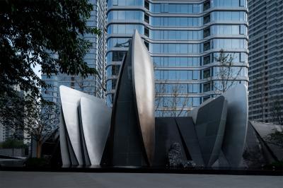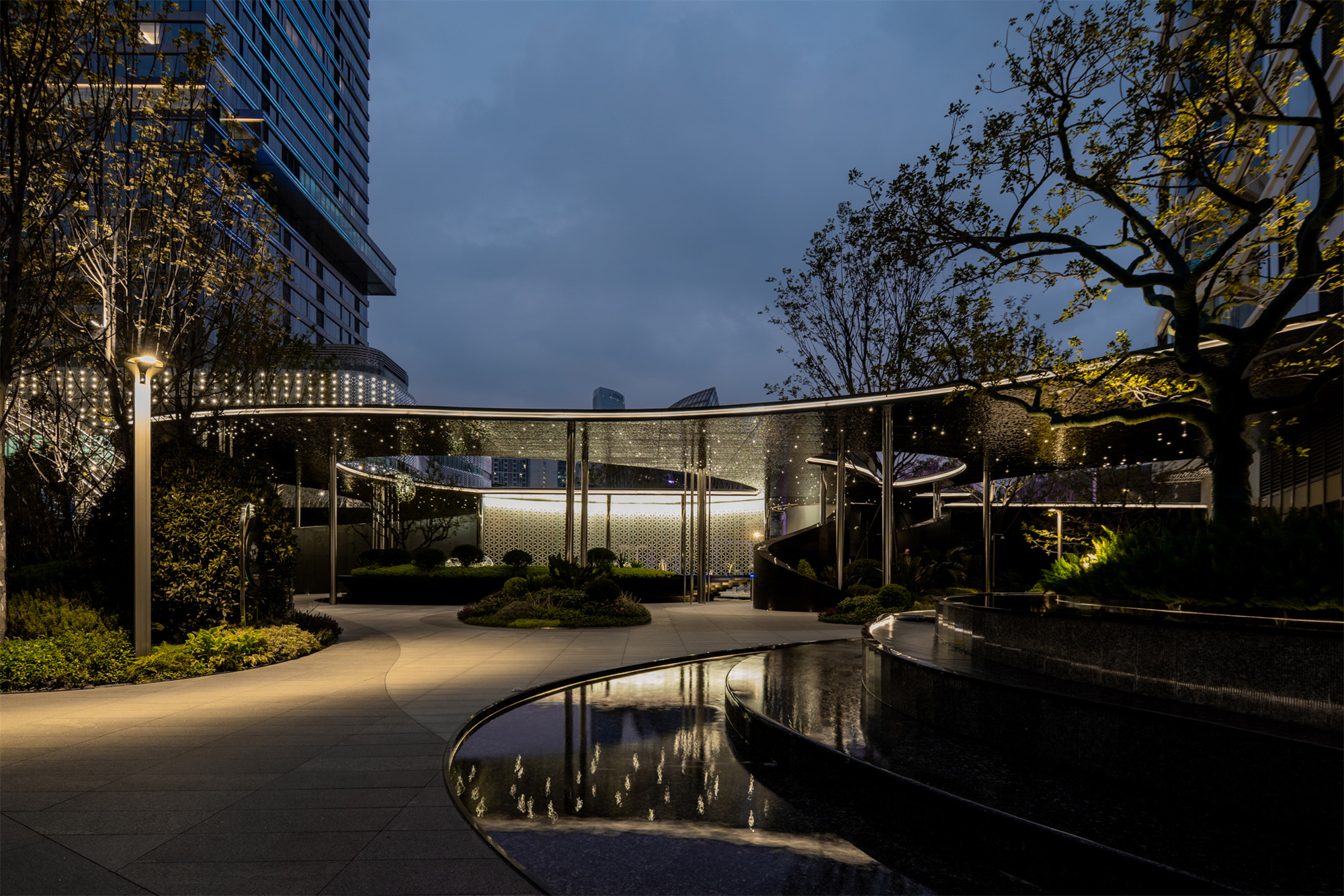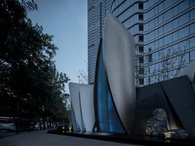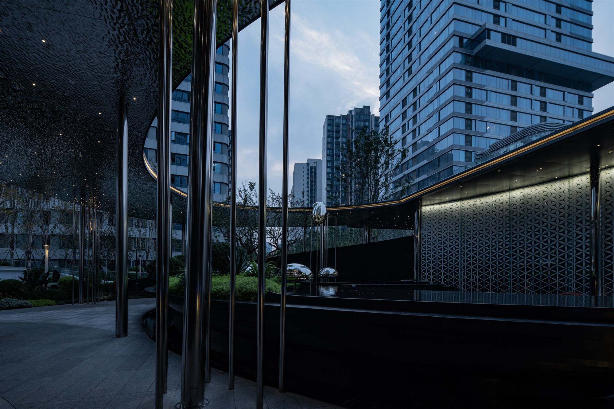 The sculpture draws the concept of sky into the body and spreads from the eccentric point to the periphery, combining the auspiciousness of the shape of "jade bi" with the concept of "ritual" of the building, which is a perfect fusion of modernism and oriental culture.