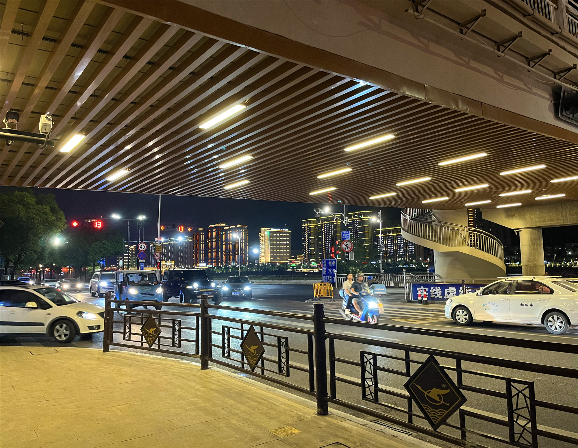 讓生態(tài)、自然、人文與城市共融發(fā)展,打造人文為魂、生態(tài)塑韻的城市形象,是此次項(xiàng)目改造的重點(diǎn)內(nèi)容,而如何深度挖掘青田文化,讓地域文化在景觀(guān)中得到很好地融合與詮釋?zhuān)彩菆F(tuán)隊(duì)考慮的重要方面。坐落于甌江大橋南段的鶴文化雕塑,也是設(shè)計(jì)團(tuán)隊(duì)傾力打造的具有青田地域文化特色的代表性景觀(guān)。它不僅融入當(dāng)?shù)爻鞘屑粲霸?,還融合青田山水脈絡(luò),處處彰顯著城市的風(fēng)格韻味,成為了青田夜晚中耀眼的文化之燈,著實(shí)留住城市記憶,延續(xù)著城市文脈。