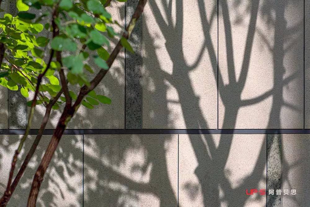 一進(jìn)院落為4米高的大堂,用嚴(yán)謹(jǐn)?shù)哪?shù)景墻排列疏密關(guān)系,營(yíng)造低調(diào)細(xì)膩的氛圍;