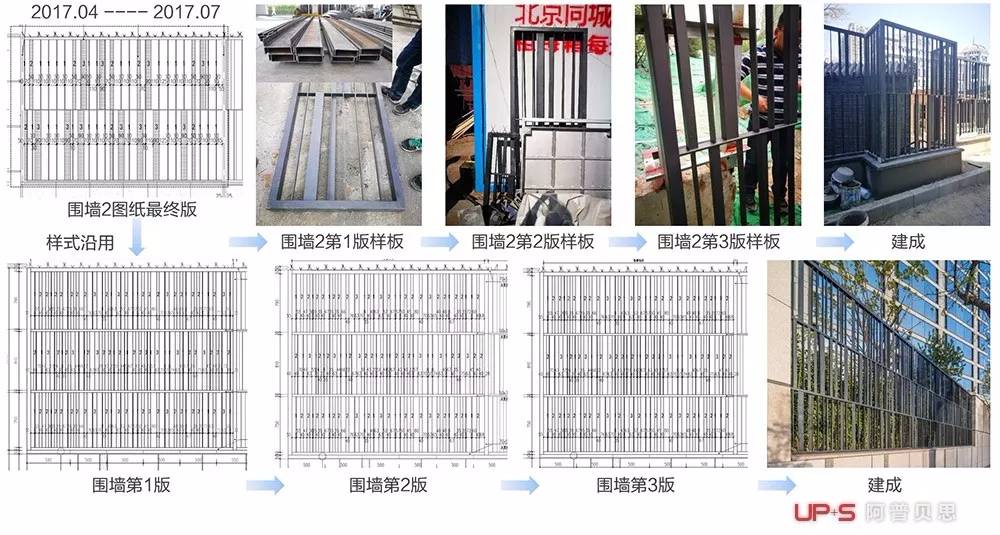 單是我們?cè)瓌?chuàng)的鐵藝圍欄,鐵藝一個(gè)標(biāo)段中就有4種不同規(guī)格,幾種搭配組合間距不等,我們內(nèi)部比對(duì)了超過(guò)10套方案,而到后期進(jìn)廠打樣,比對(duì)樣板后,又對(duì)鐵藝的厚度、間距、高度等進(jìn)行了二次調(diào)整,經(jīng)過(guò)不斷打磨,最終成型。