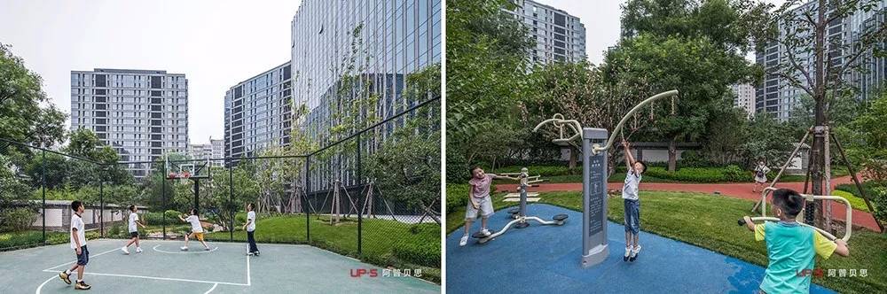 北側(cè)公園里的運(yùn)動(dòng)場(chǎng)、生態(tài)旱溪、中式建筑的自來(lái)水博物館并置在一起