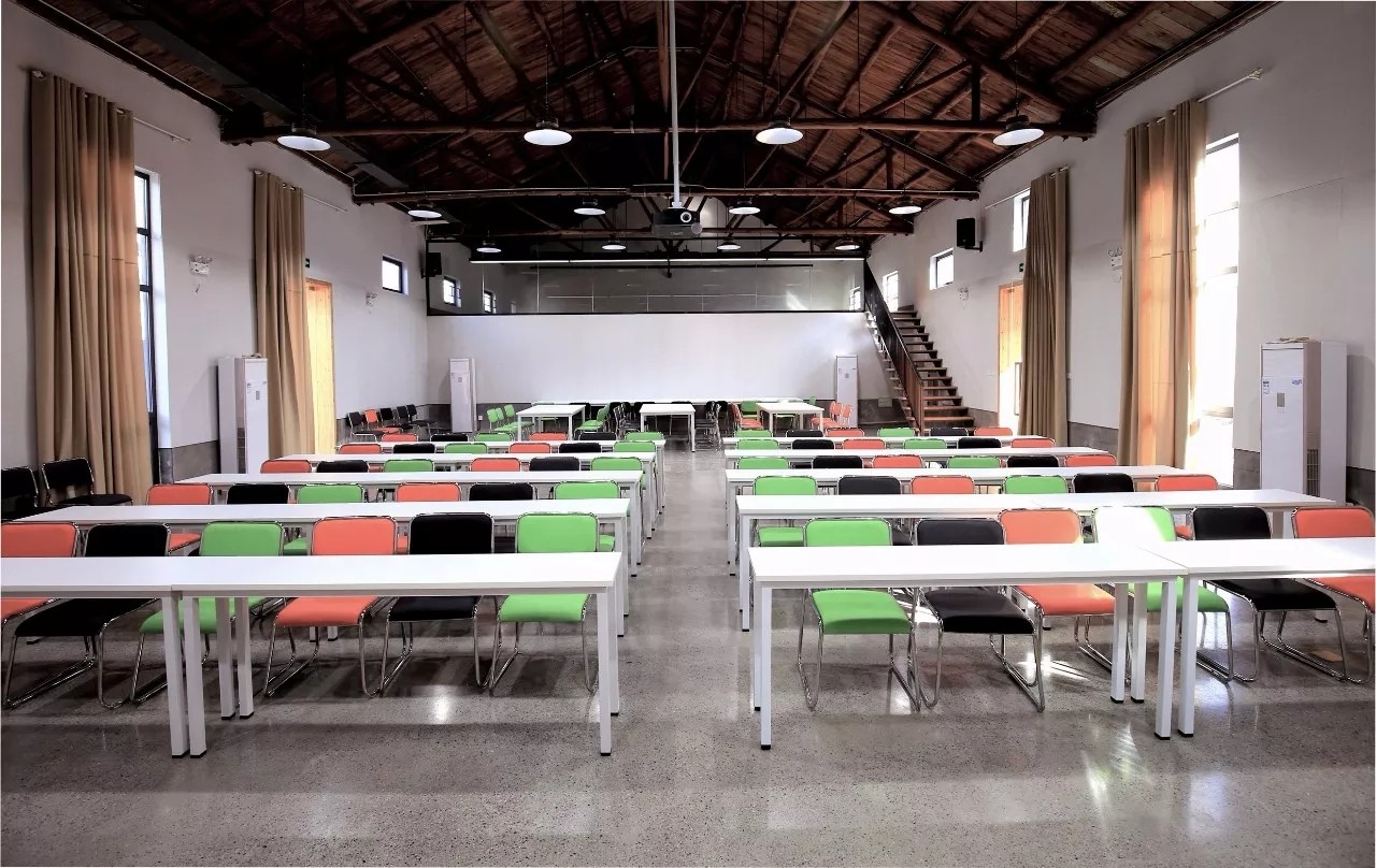 老糧倉(cāng)改造的大教室,當(dāng)?shù)貛煾导兪止ご蛟斓淖酪危l(fā)著木質(zhì)特有的味道。4-6間寬敞教室和培訓(xùn)場(chǎng)地