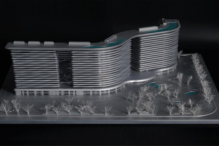 超長的連貫建筑體量,搭配流動曲線波浪式立面設(shè)計,強調(diào)水平向線條的延展與律動,打造優(yōu)雅大氣的濱海建筑特色標(biāo)志性;屋頂設(shè)置無邊際泳池,暢享海天相連的極致泳池體驗。