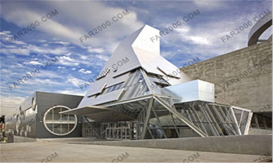 Coop Himmelb(l)au用建筑標志來將藝術和洛杉磯的社團聯系在一起。就像國際象棋一般,三座雕塑感十足的建筑重新塑造了總體規(guī)劃中那種直角的安排方式。劇院頂部的彎曲坡道形似數字“9”,形成了極易識別的標志。樓內設置了會議和展覽空間,在此可以俯瞰全城。