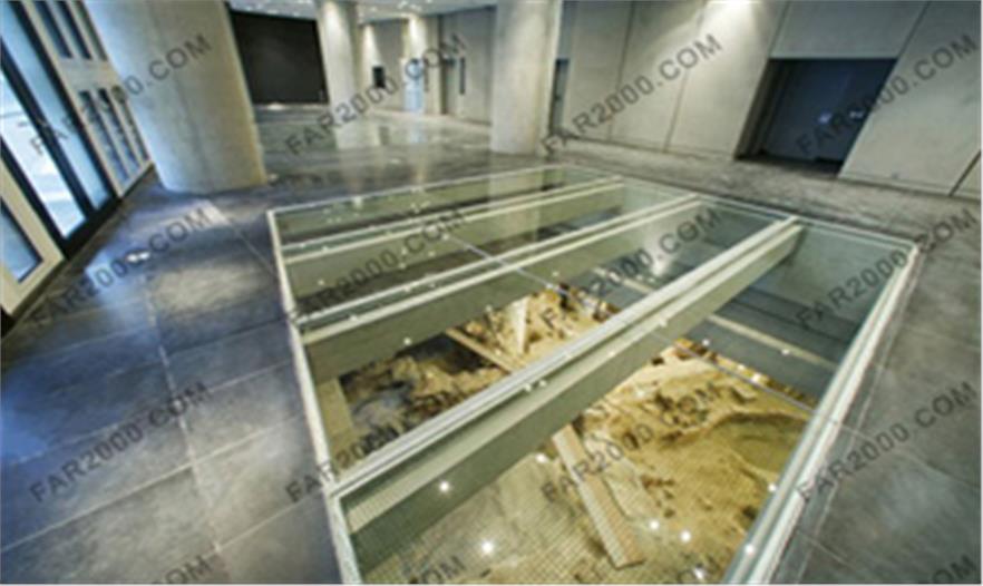 博物館內(nèi)外部的主要材料是混凝土。內(nèi)部混凝土墻和玻璃樓梯引向了Archaic展廳,并設(shè)有隔音坑,通過上部的中庭引入自然光照。Archaic展廳天花板上的進(jìn)光孔讓自然光線柔和地照射在這里的雕像上。