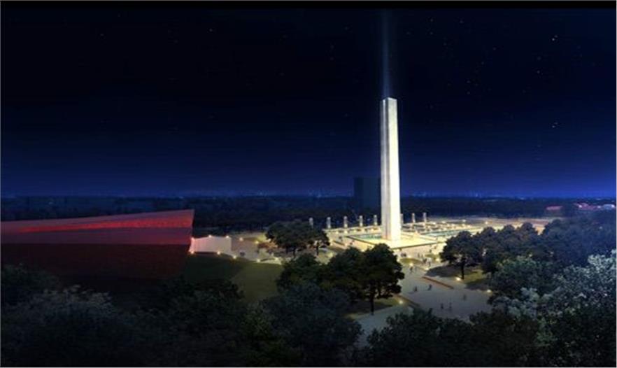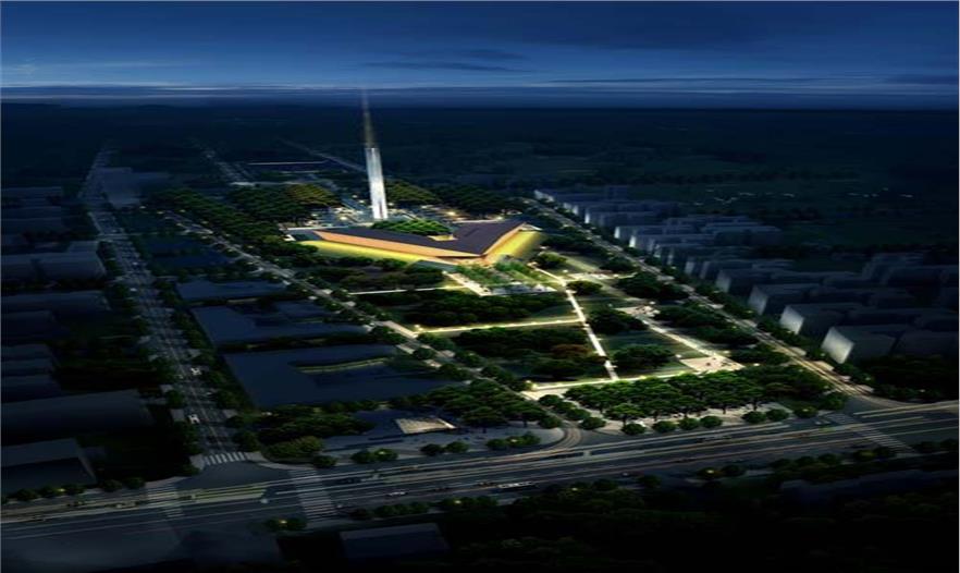 首義文化區(qū)標(biāo)志性建筑物——辛亥革命紀(jì)念碑位于首義文化區(qū)首義文化園與辛亥革命博物館(新館)之間。設(shè)計(jì)團(tuán)隊(duì)充分考慮廣場與紀(jì)念碑的交通動(dòng)線,在廣場北部設(shè)置下沉空間,鏈接紀(jì)念碑與紀(jì)念館的地下入口,游人可通過紀(jì)念碑地下空間的電梯,直達(dá)碑頂?shù)挠^光臺。而天光透過碑座表面上的倒影水池,為碑體的地下空間提供了自然采光。整體碑高100米,寓意百年辛亥。兩片高聳的碑塔圍合成特殊的冥想空間,透過碑體的冥想空間,抬頭仰望,星空點(diǎn)點(diǎn),緬懷先烈,引人遐思。當(dāng)風(fēng)從碑體穿過,發(fā)出悠揚(yáng)的鳴響,回蕩不已。白天,碑體的灰白色花崗巖與紀(jì)念館的紅褐色,產(chǎn)生協(xié)調(diào)中的對比。夜晚,一束強(qiáng)光投射出碑體空間,直達(dá)天際,氣勢恢宏。設(shè)計(jì)師在景觀設(shè)計(jì)上注重環(huán)境的簡潔協(xié)調(diào),整體上渾然大氣的藝術(shù)效果,突出了紀(jì)念碑與紀(jì)念館等主體設(shè)施。貫穿場地的五條步行道,加強(qiáng)了場地東西向的聯(lián)系。在廣場中間設(shè)置百年地雕,鏈接碑與廣場的空間,將游人引向碑體。廣場兩側(cè)為18省記功碑,與主碑一起,形成整體空間氣勢。景觀設(shè)計(jì)充分考慮了市民休閑功能,在北廣場設(shè)置了林蔭休閑步行道,南廣場以大草坪為核心,結(jié)合地形植物,設(shè)置市民休閑廊道,綠樹成蔭。