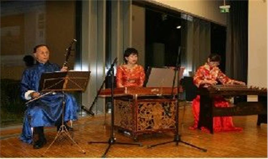 “中國城市遺產(chǎn)保護成果展”10月22日在柏林中國文化中心舉行。這是在開幕式上演員在演奏中國民樂。