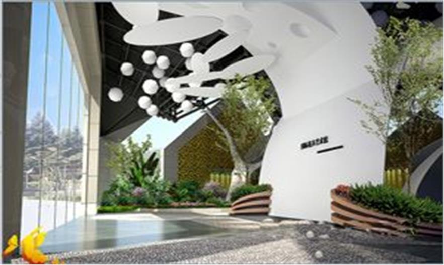 展現(xiàn)在人們面前的是簡約、時尚,層次對比分明的異性logo屏風(fēng),球形和葉片膜結(jié)構(gòu)吊頂裝飾的點綴,表現(xiàn)含苞待放的生命初始階段,整個氛圍顯出雅致而神秘的色彩。在入口左側(cè)放置花神樹,游客可自由上下此樹,體驗感受人與自然的結(jié)合。通過人們對鮮花的感性認識,引導(dǎo)人們開始一個情景消費的序曲。