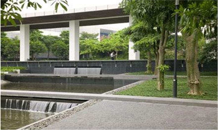 在設(shè)計(jì)時(shí),建筑物之間被留出兩個(gè)門戶的空間,突出了珠江和琶洲歷史公園的景觀,向東南看去,琶洲歷史公園成為了"借來的景觀"和場(chǎng)地中的樹林一并成為景觀的背景,而西北邊的門戶則可以鳥瞰整個(gè)花園。