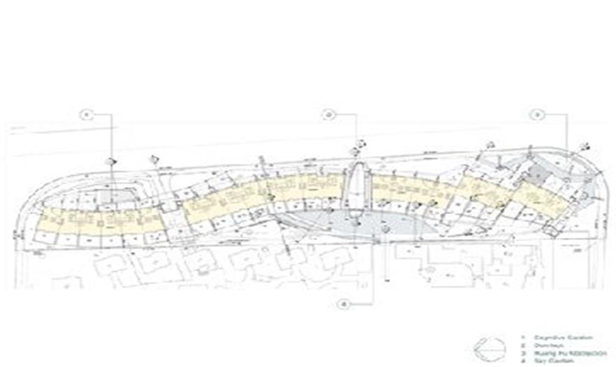 這是最大的一塊戶外空間,它被建筑完全的包圍。這個花園試圖抓住怎樣能使天際線被保留下來,這個設(shè)想反映到形式上成為了橢圓形的錦鯉池環(huán)繞著各色的種植以及不同坡度的地形。這一區(qū)域還包括小型聚會,餐飲和活動的功能。