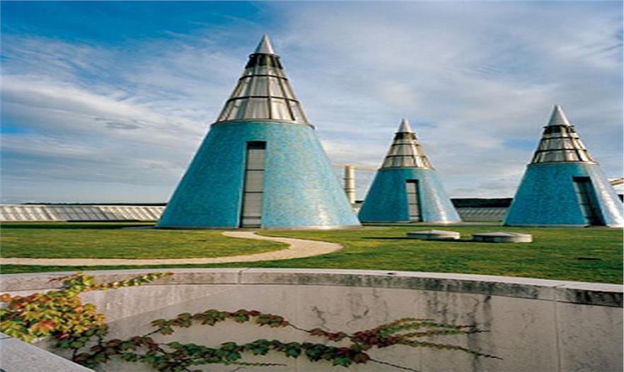 德國Bonn藝術(shù)展覽館屋頂上的草坪小徑與圓錐形天窗。在政府支持下,德國從上世紀(jì)六十年代就開始了綠色建筑的研究,現(xiàn)在已經(jīng)有很多建筑應(yīng)用了這一設(shè)想。