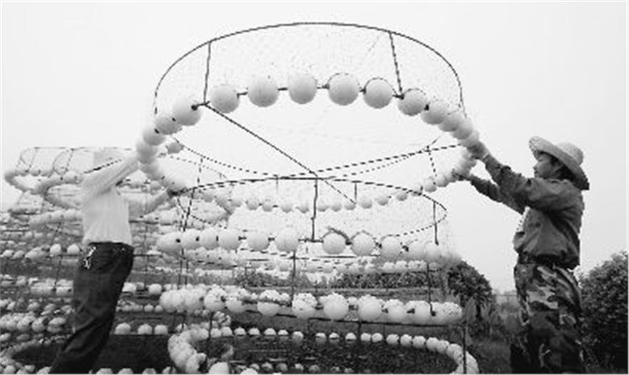 隨著巢湖水環(huán)境變差,濕地逐年減少。去年底,巢湖市開始在雙橋河一帶建設“人造濕地”,一種方法是建設“試驗田”,即在湖區(qū)打樁填土,栽上多種挺水植物;一種方法是扎制浮床,在其中移植浮水植物。目前,巢湖雙橋河一帶已形成一條長200米,寬20米的濕地“試驗田”和500多只浮床的人造濕地試驗基地。