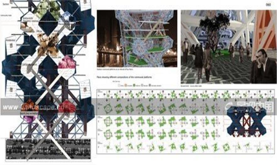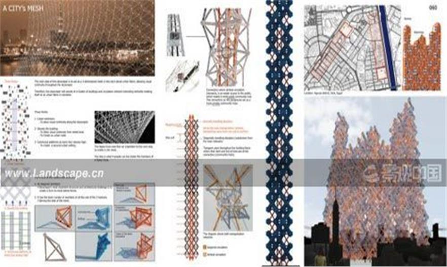 埃及建筑師Hunia Tarek Tomoum與我們分享了他為eVolo 2010摩天大廈競(jìng)賽所涉及的提案。他的設(shè)計(jì)是一個(gè)不同大小的四面體組成的3D金屬網(wǎng)結(jié)構(gòu),兩個(gè)不同的網(wǎng)格相互重疊以實(shí)現(xiàn)變化的空間設(shè)計(jì)和流通。整座建筑由一系列大型的社區(qū)樞紐組成,包括各種公共設(shè)施,如餐廳、劇場(chǎng)、公園和廣場(chǎng),與對(duì)角線上的辦公室、居住區(qū)和賓館區(qū)單元相連。