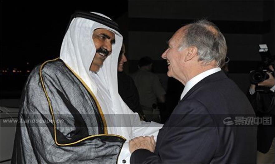 卡塔爾酋長(zhǎng)謝赫•哈馬德•本•哈利法•阿勒薩尼殿下歡迎阿迦汗殿下在卡塔爾舉行阿迦汗建筑獎(jiǎng)的頒獎(jiǎng)典禮