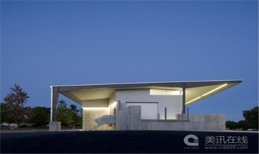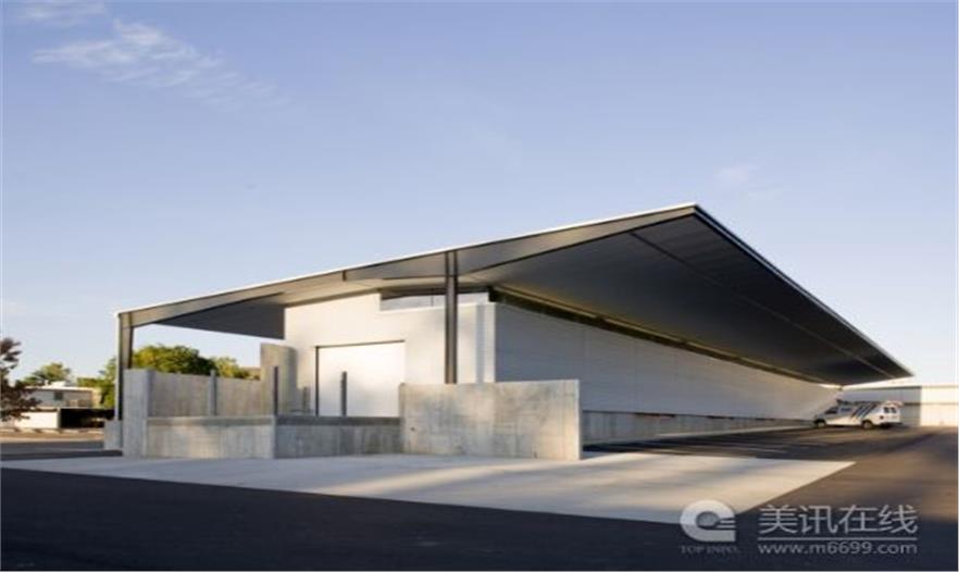 項目的設計方案包括一個引人注目的精致的結構開間和減少能耗的可持續(xù)性設計策略。一個翱翔的懸檐能夠為南面的長金屬墻壁系統(tǒng)遮蔭,避免堪薩斯州烈日的暴曬。同時懸檐下面也是一個不錯的裝卸貨物區(qū)。