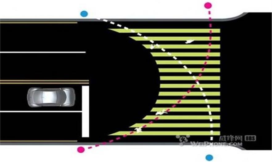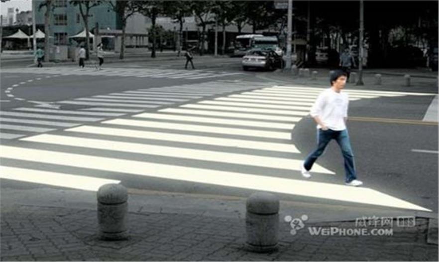 雖然筆直的斑馬線早已深入大眾觀念,但人們在過馬路的時候,往往會不自覺地按弧線軌道行走,會越走越偏向自己的目標,從而導致實際路線并不是直來直往,似乎這樣會更便捷地抵達街的對面,可越靠近馬路邊的時候,就越脫離斑馬線的保護,顯得非常危險。