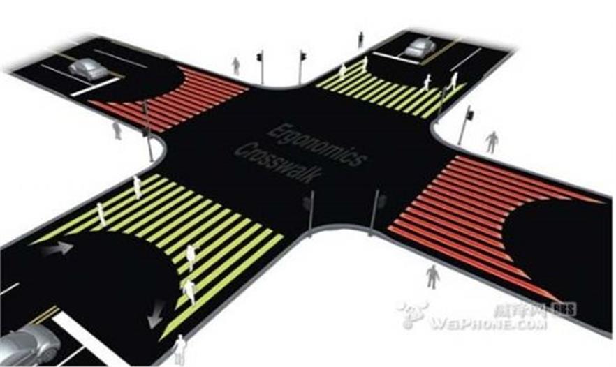 為此,在2010首爾設計博覽會上,一位來自韓國的設計師Jae Min Lim設計了一項名為Ergo Crosswalk的新型斑馬線。這項方案依照人們的行走習慣,對傳統(tǒng)的斑馬線做出了改進,將斑馬線的側邊改了弧形,整個斑馬線形狀呈“彎月”狀,不過這個這彎月是兩頭寬而中間窄。與此同時,設計師還打算給人行橫道加上LED顯示面板,以提高人行橫道的醒目程度,最大化保護行人安全通過馬路。這塊面板發(fā)光所需的能量則來源于車輛和行人對人行橫道施加的壓力,無需額外的電力支持。