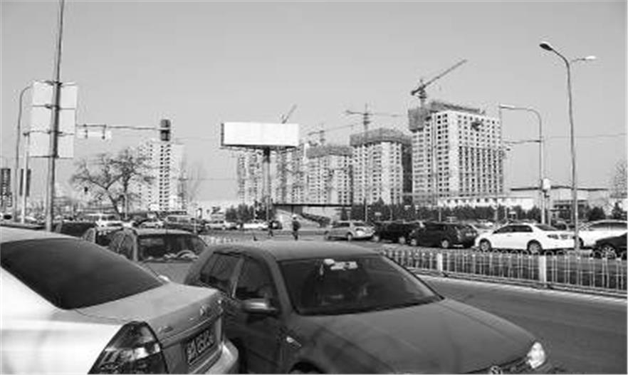 北京回龍觀地鐵站前沒有規(guī)劃停車場,大量開車換乘的乘客把車輛停放在道路兩側(cè)。地鐵站出口對面,正在興建一處商品房小區(qū)。 記者 李濤攝