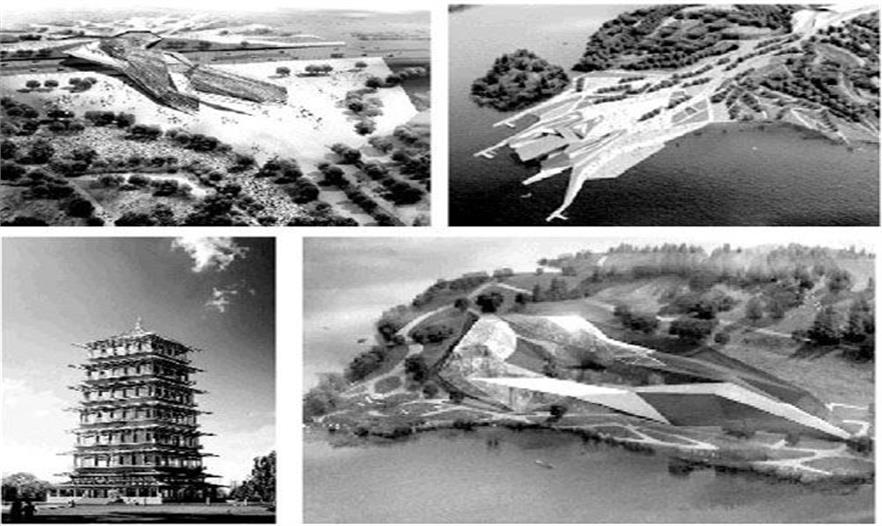 灞上人家是極具淳樸陜西鄉(xiāng)韻、豪邁秦川風(fēng)情的建筑群。作為世園會(huì)的三大服務(wù)區(qū)之一,該景點(diǎn)試圖提供給人以特別的建筑與景觀體驗(yàn),讓游人更多的體驗(yàn)到我國(guó)關(guān)中的人文精神和自然風(fēng)貌。建筑以中國(guó)傳統(tǒng)四合院為藍(lán)本,采取《四水歸堂》的形式,并以建筑尺度的延展,表皮的變異與功能的變通作為切入點(diǎn),力圖使建筑擺脫簡(jiǎn)單的文化標(biāo)識(shí),使之成為一個(gè)個(gè)容納新生活,催生新故事的盒子。在群體組織上,采取簇群式的布局方式,讓建筑最大程度的親近自然。景觀種植配合建筑設(shè)計(jì),體現(xiàn)田園、野趣的村落環(huán)境,并以地方鄉(xiāng)土植物為主。喬木種植方式模仿村落宅前以及路旁成片、成簇的自然種植,灌木種植,還模仿河岸兩側(cè)慢坡優(yōu)美的自然景象。