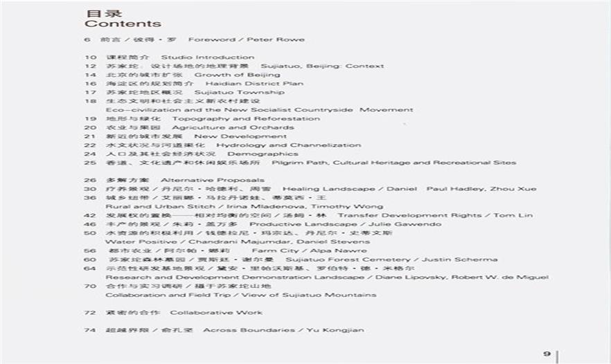 哈佛大學(xué)設(shè)計(jì)學(xué)院2010年春季學(xué)期設(shè)計(jì)課程成果——由哈佛大學(xué)設(shè)計(jì)學(xué)院編著的《景觀和生態(tài)城市主義——北京蘇家坨地區(qū)多解規(guī)劃》(Landscape and Ecological Urbanism Alternatives for Sujiatuo, Beijing)一書現(xiàn)已出版。本書采用中英雙語模式,向讀者詳細(xì)闡述了這一設(shè)計(jì)課程的具體實(shí)踐成果。