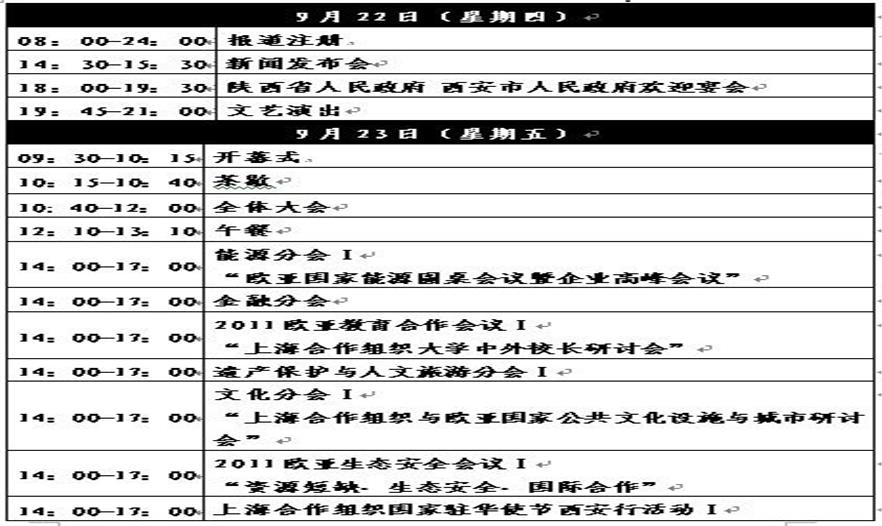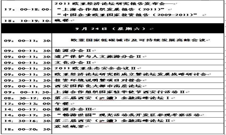 2011歐亞經(jīng)濟(jì)論壇日程