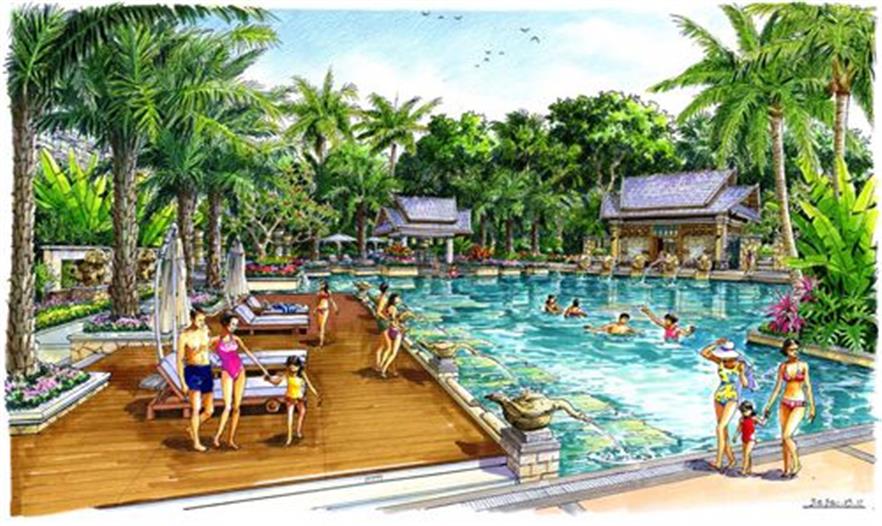 地產(chǎn)景觀作品集:泳池邊足夠大的休閑活動(dòng)平臺(tái)