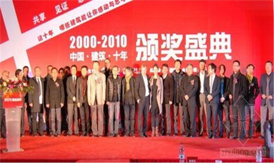 2011年11月12日,“中國建筑十年”頒獎盛典晚會于北京798藝術(shù)區(qū)時態(tài)空間隆重舉行。亞洲建筑師協(xié)會主席(日本)國廣喬治、 北京市建筑設(shè)計(jì)研究院院長朱小地、中國建筑設(shè)計(jì)研究院副院長崔愷、 上海市徐匯區(qū)區(qū)委書記孫繼偉、北京大學(xué)建筑與景觀設(shè)計(jì)學(xué)院院長俞孔堅(jiān)、 清華大學(xué)建筑學(xué)院教授(美國)彭培根、城市問題專家和新華社高級記者王軍等人作為頒獎嘉賓出席了晚會。