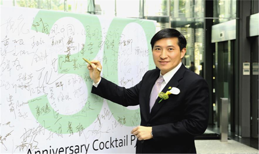 泛亞國際董事長劉興達(dá)先生在 “泛亞國際30周年”簽到板上簽名