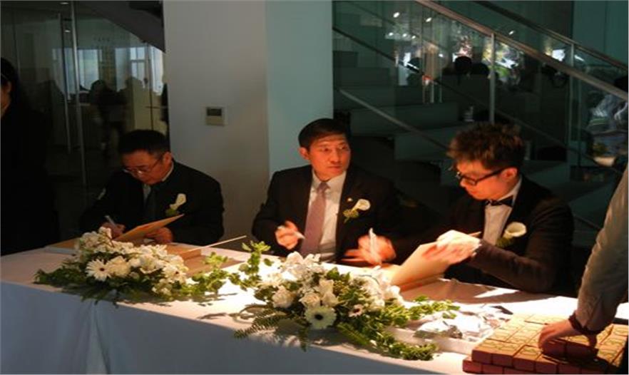 泛亞國際三位高層為賓客簽字:中國區(qū)首席代表田明、董事長劉興達(dá)、總裁兼總設(shè)計(jì)師陳奕仁