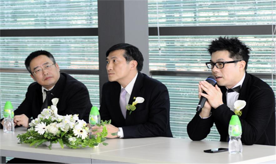 中國區(qū)首席代表田明、董事長劉興達(dá)、總裁兼總設(shè)計(jì)師陳奕仁答記者問