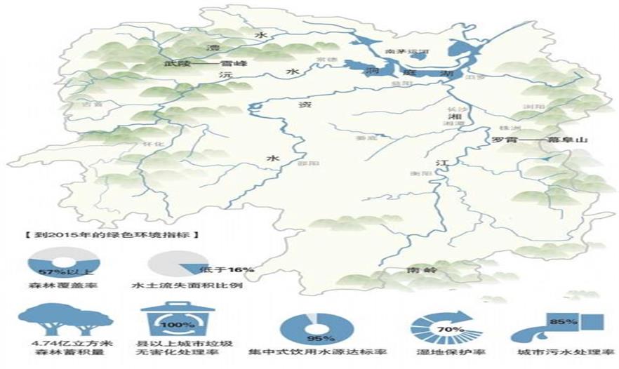 “綠色湖南”是2010年省委省政府提出的“四個湖南”(綠色湖南、創(chuàng)新型湖南、數(shù)字湖南、法治湖南)之一。在綠色湖南建設2015年發(fā)展目標方面,《綱要》列出綠色環(huán)境、綠色生產、綠色消費和綠色文化四個具體指標。