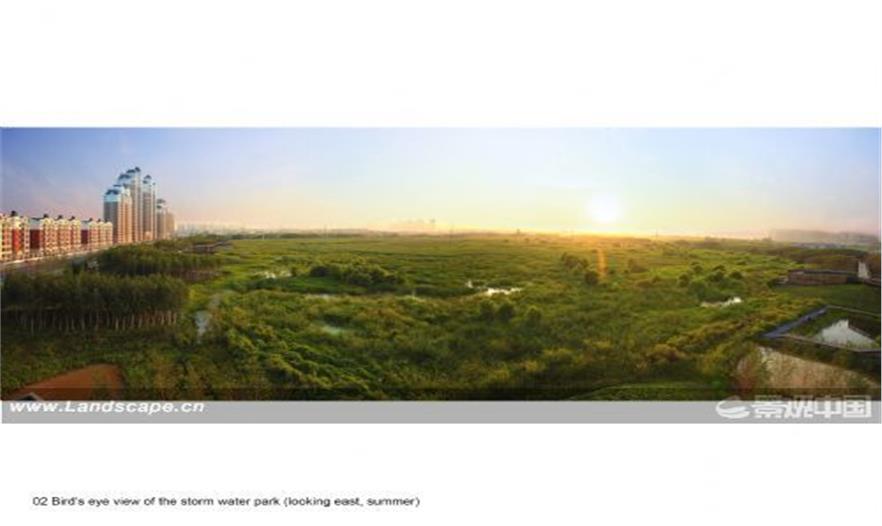 2009年中,受當(dāng)?shù)卣?,北京土人景觀與建筑規(guī)劃設(shè)計研究院,承擔(dān)了群力新區(qū)的一個主要公園設(shè)計。公園占地34公頃,被列為城市保護(hù)濕地。場地四周包圍著公路及高密度城市的發(fā)展,導(dǎo)致該濕地面臨水源枯竭,濕地退化,并有消失的危險。政府要求保住這塊濕地,土人的策略是將該面臨消失的濕地轉(zhuǎn)化為雨洪公園,一方面解決新區(qū)雨洪的排放和滯留,使城市免受澇災(zāi)威脅,同時,利用城市雨洪,恢復(fù)濕地系統(tǒng),營造出具有多種生態(tài)服務(wù)的城市生態(tài)基礎(chǔ)設(shè)施。實踐證明,設(shè)計獲得了巨大成功,實現(xiàn)了設(shè)計的意圖。